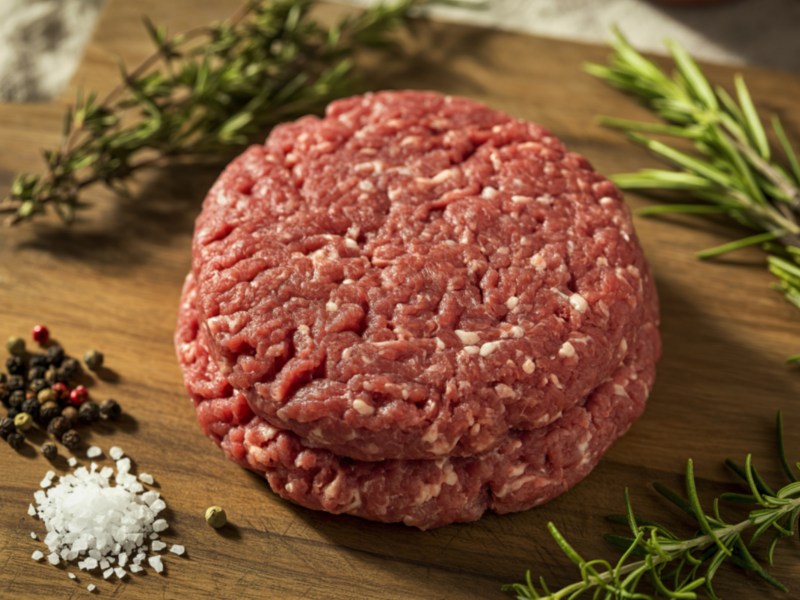2x half om half Hamburger (ca. 120 g per stuk) – deze zijn al gekruid! - zelf in partjes snijden