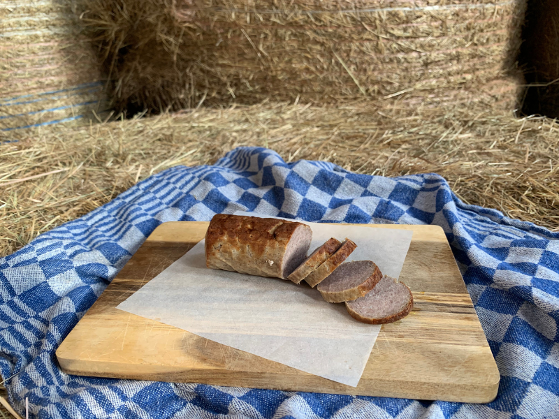 Onze grillworst wordt gemaakt van bosvarkens die buiten leven in bossen en bosranden. Ze bewegen veel, wroeten in de bodem en volgen hun natuurlijke gedrag. Ze halen een deel van hun voeding uit het bos en krijgen daarnaast groenteresten en reststromen, zoals bijproducten van oliemolens. Daardoor groeien ze langzamer en worden ze ouder dan gangbare varkens. Dit zorgt voor roder, steviger en smaakvoller vlees. De grillworst wordt ambachtelijk bereid, zonder kunstmatige toevoegingen of kleurzout, en krijgt zijn grillsmaak door echte verhitting in plaats van rookaroma’s.