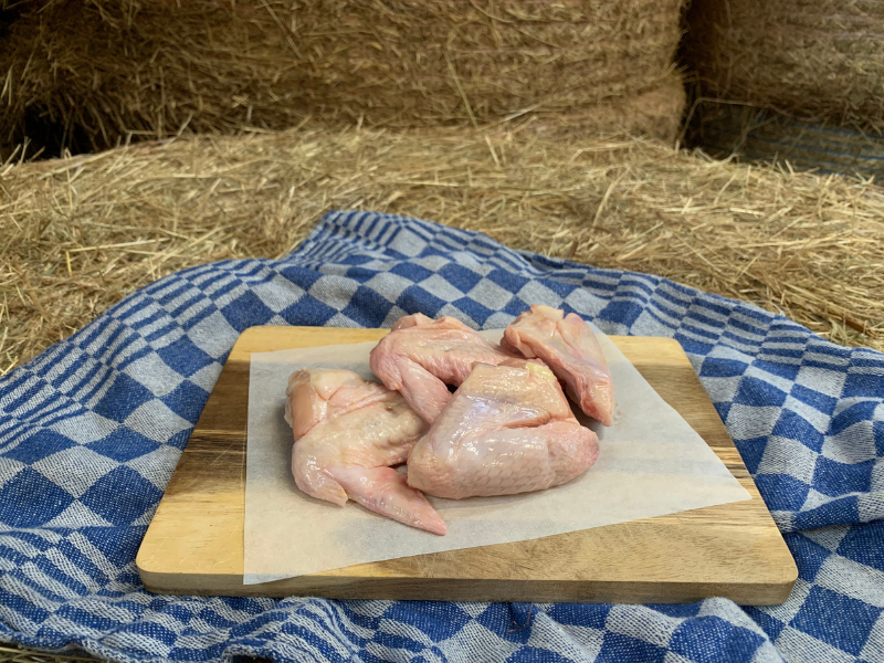 Biologische kippenvleugels van Bioland kippen uit Duitsland. Perfect voor oven, BBQ of airfryer. Afkomstig van langzamer gegroeide kippen met meer leefruimte en biologisch voer. Ingezet wanneer onze eigen graskip tijdelijk niet beschikbaar is. Lees meer